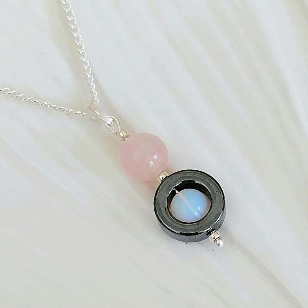 Love. Rose Quartz Moonstone Spinner Necklace. £11.99